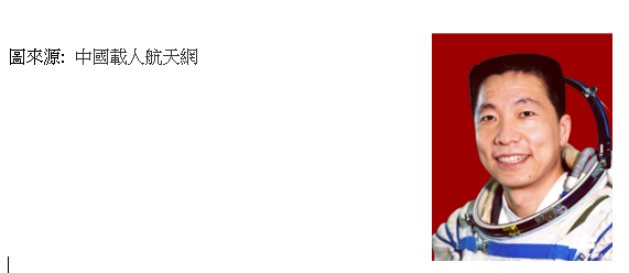2003年10月15日,長征二號F火箭運載的神舟五號飛船在酒泉衛星發射中心發射,順利成功進入太空。楊利偉是「神舟五號」飛船的唯一航天員,他成為了中國第一位實現太空飛行的航天員,也是亞洲國家第六位進入太空的太空人。