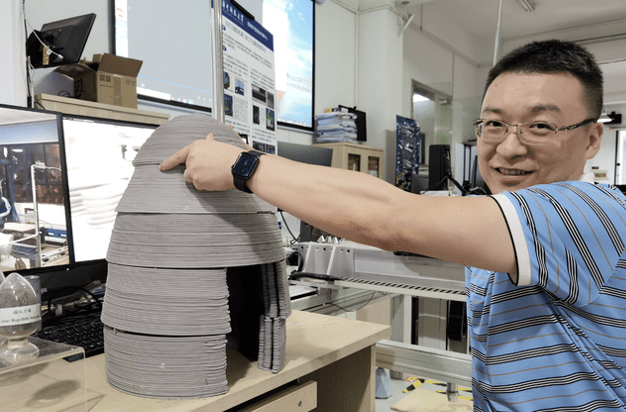 華中科技大學的科研團隊利用模擬月壤打印出名為「月壺尊」的建築雛形