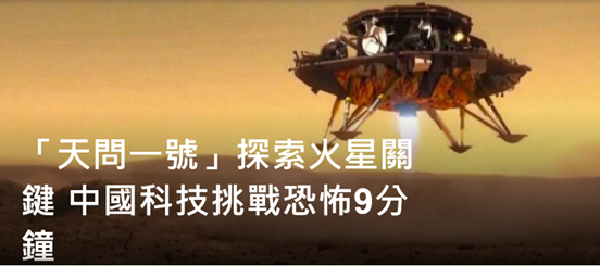 這個自主運作的程序,讓遠在中國的操控中心都變得沉默,大家只有靜靜地等候降落的結果。在此之前,美、蘇和歐洲太空總署都有探測器敗在這幾分鐘裏,致前功盡廢。事實上,在2020年前,美、蘇只有8個探測器成功登陸火星,當中包括4輛火星車。