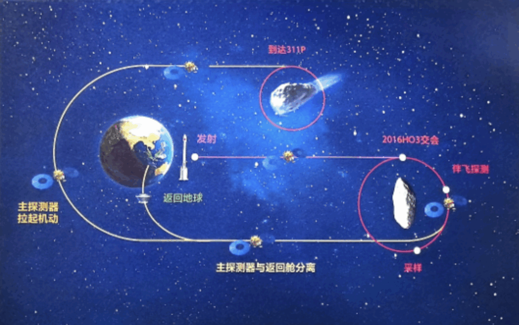 採樣任務完成後,天問二號預計將於2027年返回,返回艙在接近地球位置會與主探測器分離,之後獨自著陸地球並完成回收;另一方面,主探測器則繼續飛往主帶彗星(P/2013 P5),進行長期的遙感探測及原位測量,整個任務將持續約10年。