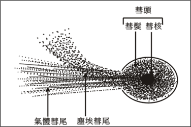 彗星,俗稱掃把星,彗星是比較細小的星體,由冰塊、塵埃及氣體所組成。當彗星接近太陽時,太陽的熱力會蒸發彗核內的冰塊,形成煙霧狀的氣體包圍著彗核而形成彗髮。彗星大致上由彗核、彗髮及彗尾所組成﹝見下圖﹞,彗核被彗髮所包圍,而兩者合稱為彗頭。有些彗尾很長而且相當光亮,是彗星最顯眼的部分。